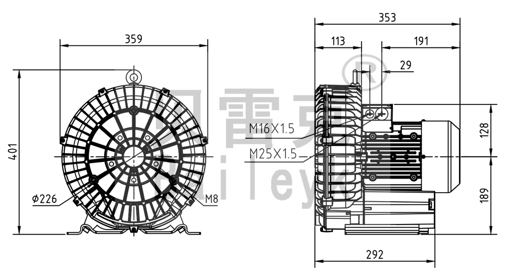 最大風量:270m3/h 最大正壓:220mbar 最大負壓:235mbar 防護等級:IP55 噪音:67db 重量:27Kg